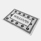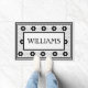 This classy cute black and white faux tile doormat is perfect for any home. Its clean lines, simple colours, and vintage pattern are timeless and versatile. This doormat can be customised with your own last name using the personalisation feature.
