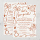 Giddy up, ladies! Celebrate the bride-to-be with this trendy "Let’s Go Girls" Disco Cowgirl Bachelorette Invitation. Featuring an earthy terracotta (desert rose) color palette, playful western illustrations (like horseshoes, cowboy boots, and cacti), and a shimmering disco ball, this suite is perfect for a Nashville, Austin, or Scottsdale desert boho chic weekend. This double-sided design includes a formal invitation on the front and a full weekend itinerary on the back, making it easy for your "I Do" crew to keep track of every brunch, horseback ride, and line dancing session. Whether you’re calling it a "Last Rodeo" or a "Nashville Bach," this editable template is the ultimate way to set the vibe for a neon-lit weekend!