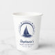 Nautical blue and white bridal shower / bachelorette party paper cups with sailboat and phrase "last sail before the veil". Personalise it with your event details.