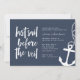 Invite the bride's besties to a boat or boating themed bachelorette celebration with these cute nautical bachelorette party invitations. Modern coastal design for your boat charter or yacht party features "last sail before the veil" in white hand sketched lettering, with a rope and anchor illustration at the right.