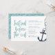 Invite the bride's besties to a boat or boating themed bachelorette celebration with these cute nautical bachelorette party invitations. Modern coastal design for your boat charter or yacht party features "last sail before the veil" in aqua hand sketched lettering, with a rope and anchor illustration at the right.