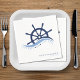 Nautical blue and white bridal shower / bachelorette party napkin with ship helm and phrase "last sail before the veil". Personalise it with your event details.