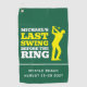 Add these matching Last Swing Before the Ring Bachelor Party Golf Towels to your golf weekend celebration! A great gift for your groomsmen to remember your weekend on the golf course.