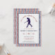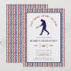 Celebrate the groom's final inning as a single man with this "Last Swing Before the Ring" baseball-themed bachelor party invitation. Featuring a classic navy blue silhouette of a batter against a rustic white wood-grain background, this design is framed by a sporty red and navy chevron stitch border—reminiscent of the seams on a baseball. Perfect for a night out at the ballpark or a sports bar celebration, this template is fully customizable. Easily update the name, the date, time, and location to fit your specific event.