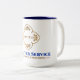 15 oz White and Blue coffee mug with LASTCo logo. Great for starting your day on a the right note.