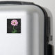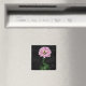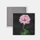 A photograph of a pink Zinnia, with double pink petal flower with yellow stars, in a garden.