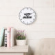 This is a clean and elegant wall clock, white background with black numbers of a simple style...the only thing is, they're running backwards! The perfect joke clock for people who are always running a bit behind! Features the text "Late Again!" in a font style that speaks of urgency! You of course can alter the text to say something else if you wish.