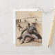 .Humourous image from Winslow Homer's Souvenir cards showing the daily life of Union soldiers during the Civil War, this view shows a soldier rushing from his tent as he is late for morning Roll Call. Harper's sent Homer to the front lines of the American Civil War (1861–1865), where he sketched battle scenes and camp life, the quiet moments as well as the chaotic ones. Although the drawings did not get much attention at the time, they mark Homer's expanding skills from illustrator to painter.