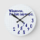 I needed a clock for my bathroom. Yes, my bathroom. So that it would "fit" and look right in the space, I needed something that was frameless, and contemporary. This clock has the water/nature/serene look I wanted. It looks great on my bathroom wall! The blue is well suited to resemble water and the beige matches the vanity. I decided to customize it with inspirational words....perfect! This was my first order, and now, I will certainly come back for future purchases. Very nice, the printing is beautiful and I'm pleased with it.