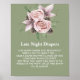 Late night diaper poster a popular baby shower activity. Easily edit the text, colour, size to make it uniquely yours. We also have coordinating and matching stationery and party goods under Winter Baby In Bloom collection bundle up with napkins, plates, favour tags, invitations, thank you cards, welcome signs, backdrop banner, baby shower games and more. Everything you need to throw a splashy elegant party.