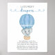 Add some laughter to your boy baby shower with this adorable "Late Night Diapers" game poster! Featuring a sweet watercolor elephant in a soft blue hot air balloon, this charming sign invites guests to write funny, sweet, or encouraging messages on diapers to give the parents-to-be a much-needed smile during late-night changes. Order yours today to create a fun and memorable baby shower activity!