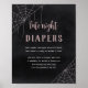 Encourage laughs and late-night support with this chic 8x10 “Late Night Diapers” sign from the Halloween baby shower collection by Redwood & Vine Design Co. With a dark gothic background, blush pink script, and whimsical spiderweb accents, this printable or printed sign adds a stylish touch to your spooky shower setup. Perfect for encouraging guests to leave funny or uplifting messages on diapers for the parents-to-be.