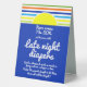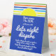 Baby Shower Late nigh diapers game sign. Matching design for Here Comes The Son Summer Stripes Baby Shower. A modern and fun and colourful design for an upbeat summer baby shower. Cheerful and fun font for customisable text.