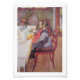 Little girl sitting up on a kitchen chair at the table. Vintage art by Swedish painter Carl Larsson.