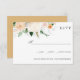 Designed to coordinate with our Late Summer watercolor floral wedding collection, this elegant botanical RSVP card features a sophisticated watercolor branch of flowers, eucalyptus leaves, orange slice, and foliage in an fresh palette of white, ivory, orange, green and pink hues in the upper left side of the card with your desired response date along the bottom.