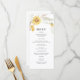 Rustic sunflower wedding Menu featuring hand painted watercolor yellow florals and earthy botanical foliage. Customise your own wedding menu using the template provided.