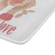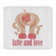 Latte and love cup, hands and coffee quote cutting board
