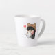 White mug with a cute drawing of a girl drinking on her mug on a cold day.