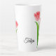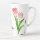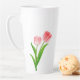 This latte mug is shown a lovely pink tulips with water droplets print.