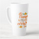 This large size latte mug is shown with a cute pumpkin spice and everything nice print.