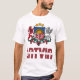 Latvia Flag and Coat Of Arms Patriotic T-Shirt with the beautiful Latvia Coat of Arms and the word "Latvia" infused with the pattern from the national flag printed on the front. On the back side is very small and stylish representation of the Latvia flag. Flag is fully customisable or removable using "Customise it!" feature. If you are looking for a gorgeous design with the both coat of arms and the flag of Latvia in one place look no further. Latvia T-Shirt is what you are looking for! © CountriesOfTheWorld