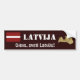 Latvian flag and map design with alterable text on a durable 4mil thick vinyl bumper sticker.