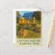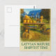 Celebrate the abundance and warmth of autumn with this charming watercolor-style postcard. Featuring a rustic cart loaded with golden pumpkins and colorful gourds, set against a backdrop of a Latvian countryside estate, this image captures the peaceful spirit of the harvest season. Perfect for sending seasonal greetings, sharing rural beauty, or simply enjoying the nostalgic feel of country life.