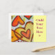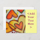 Peach, pink, and orange hearts cross over each other like clouds drifting in a sky. A green outline traces each heart. Pale yellow colour dots are like confetti between the hearts. The watercolor painting has a light layer of gold and pink on top. Laugh hearts are a detail from Inspirational Word "Laugh" painting. Personalise this postcard with your own text and images.
