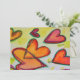 Peach, pink, and orange hearts fly across the painting like loose fall leaves caught in a breeze. A green outline traces each heart. Pale yellow colour dots are like confetti between the hearts. The watercolor painting has a light layer of gold and pink on top. Laugh hearts are a detail from Inspirational Word "Laugh" painting. Personalise this invitation with your own text and images using the Custom It option to make your own special invites! Proceeds from the sale of this invitation support DonnaBellas Angels, a 501(c)3 non-profit.