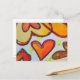 Peach, pink, and orange hearts stretch and reach for each other flowers in a garden bending to the sun. A green outline traces each heart. Pale yellow colour dots are like confetti between the hearts. The watercolor painting has a light layer of gold and pink on top. Customise this postcard with your personal text and images!