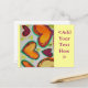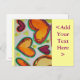 Peach, pink, and orange hearts alternate in up and down directions creating a happy girl pink bliss. A green outline traces each heart. Pale yellow colour dots are like confetti between the hearts. The watercolor painting has a light layer of gold and pink on top. Personalise this postcard with your own text and images.