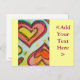 Yellow, peach, and orange hearts form two concentric hearts gliding towards each other tip to tip. Pale yellow colour dots are like confetti between the hearts. The watercolor painting has a light layer of gold and pink on top. Personalise this postcard with your own text and images.