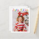 Beautiful, colourful full photo Christmas postcard with Laughing All the Way in pretty rainbow cursive script. Personalise with your favourite vertical family photograph of your smiling child above your name or custom greeting in red. Fun and cheerful holiday postcards.