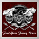 Long Live the Chef! This cool and comical vintage styled laughing chef skulls poster features three charismatic skull chefs with crossed silverware, laughing in front of a dark blue damask design. Customisation feature allows you to add text for a personalised touch. Makes a great gift for the executive chef, sous chef, home cook, line cook, or anyone with a fierce passion for cooking...and a sense of humour.
