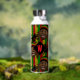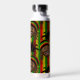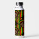 Reggae themed water bottle patterned front and back with a cute Rasta man character, over red, yellow and green stripes. On the front is a monogram diamond area where you can add your own initial