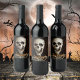 Fun Halloween bottle labels feature slightly creepy, kinda funny photo of laughing skeleton with customisable text . Perfect for adult Halloween parties and events!