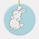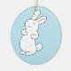 Laughing white bunny on blue ceramic ornament