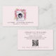 Modern QR Code Laundry Cleaning Services Business Card. Design features washing machine with floral elements on a blush pink background, your name and title on the front. Personalise further with your contact details and qr code on the back.