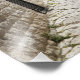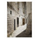 Photo print of laundry consisting of white blankets hanging to dry in the sun on the facade of a white stone house in an alley with sandstone stairs in a town in Italy, creating a typical Italian/mediterranean street view.