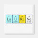 Laurane spelled out as La U Ra Ne (Lanthanum Uranium Radium Neon) on a magnet for the scientist in you.