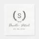 This modern rustic logo-style design has a laurel branch frame with your monogram initial. Personalise the template with the bride and groom's names or monogram initials. Add your wedding date, the city, state or venue name or any other custom text. Use the design tools to choose any colours, edit the fonts or upload your own photos to create custom wedding cocktail napkins to match your wedding colours and style!
