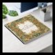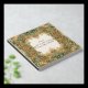 Intricate, highly detailed vintage motif with Inca and Aztec influences; greens and orange with gold