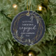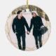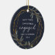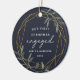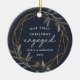 Celebrate your first Christmas as an engaged couple with this charming and festive ornament. Round design features "our first Christmas engaged" in modern block and script lettering, surrounded by a faux gold foil border accented with green winter leaves. Personalise with your names and the year, and add a photo to the back with a matching golden geometric frame.