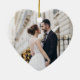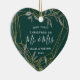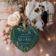 Celebrate your first Christmas as an engaged couple with this charming and festive ornament. Heart shaped design features "our first Christmas as Mr. & Mrs." (or your choice of titles) in modern block and script lettering, surrounded by a faux gold foil border accented with green winter leaves. Personalise with your names and the year, and add a wedding photo to the back.