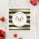 Laurel Monogrammed Black and Gold Graduation Party Napkins - Matching Cups- Plates and Invitations too - Classic and Clean - a simple gold laurel wreath encloses the monograms of the first and last name- one letter on top of the other - one letter gold, the other black - Clean classic text - All is editable - as a matter of fact the black that shows behind the gold stripes is a background colour that can be changed if you like to any colour of your choosing - Use the Customise link and you will see [Show Colour Picker] for more background colour choices. Any colour you choose will show between the gold stripes.