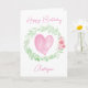 A green watercolor laurel and pink flowers with a pink watercolor heart featured on the front of this personalised birthday card for her. You will be able to easily personalise the front with her name and birthday message inside. This would make a wonderful birthday keepsake card for her.