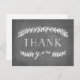 Flat Thank You Post Card featuring hand drawn laurel leaves, modern typography and a chalkboard effect background.