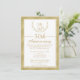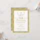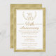 This 50th wedding anniversary invitation features a faux gold laurel wreath and border. The couples initials appear in the laurel wreath at the top of the invitation. The text area is white with a gold color border and divider. The border on the front of the invitation and the back of the invitation features a faux gold background with a diamond like pattern. This 50th laurel wreath and faux gold invitation is ready to be personalized.