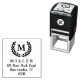 Use this initial monogram custom address stamp, featuring a laurel wreath, on all your correspondences. Fill in your information on the template form. Use the "Customise" feature to access the advanced menus to change font and layout.