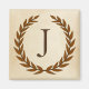 A delicate laurel wreath is layered over a parchment paper background in the classic Roman style. This design is personalised with the monogram "J" in a rich sienna tone.